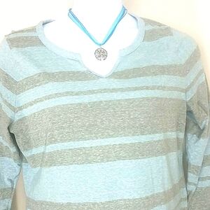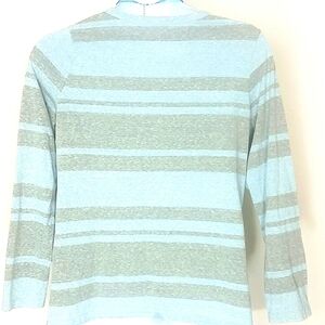 Girls Tshirt long sleeve v neck blue gray stripe stretch