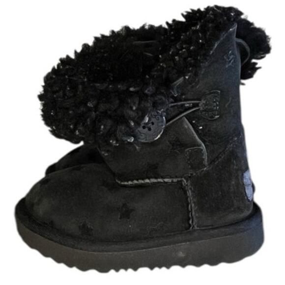 Girls UGG Bailey Button II Star Suede Faux Fur Lined Snow Boot Size 6 Black.