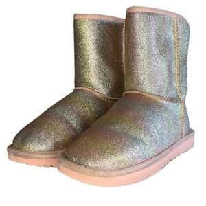 Girls UGG Classic II Glitter Cushioned Footbed Faux Fur Lined Snow Boot Size 3.