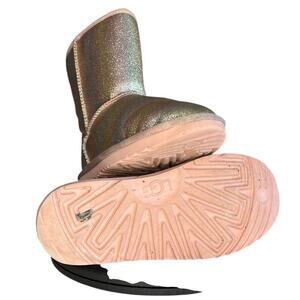 Girls UGG Classic II Glitter Cushioned Footbed Faux Fur Lined Snow Boot Size 3