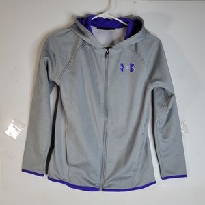 Girls Under Armour Gray/Purple Zip front Hooded jacket Youth large Loose fit