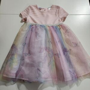 Girls Unicorn & Butterflies Pink Formal Dress Rainbow Tulle Size 5