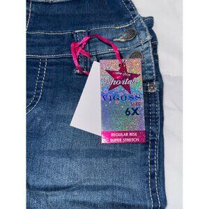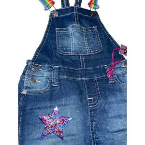Girls Vigoss Denim Shortalls Size 6X With Rainbow Straps & Glitter Star