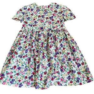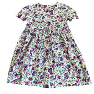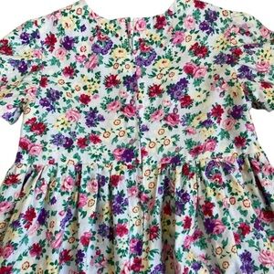 Girls Vintage 90s Vivid Floral Print Gathered Waist Sundress w Rosebuds Sz 4-5T