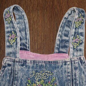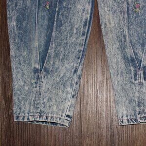 Girls Vintage Popsicle Acid Wash Pleated Front Overalls Denim Jeans Floral sz 4