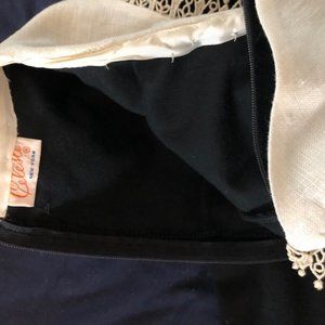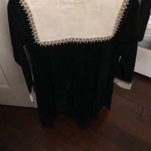 Rarely worn, dry cleaned-black velvet and creamy white linen collar and cuffs.