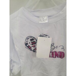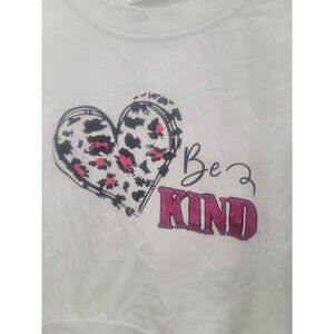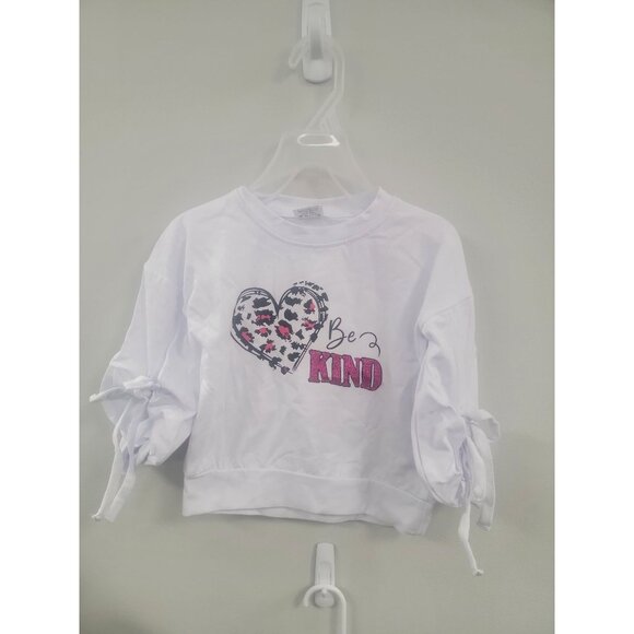 Girls White "Be Kind" Sweatshirt With Heart Graphic & Bow Sleeves 2T