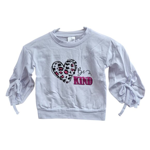 Girls White "Be Kind" Sweatshirt With Heart Graphic & Bow Sleeves 3T