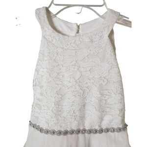 Girls' White Dress Sleeveless Glitter Lace Bodice Rhinestone Trimmed Elegant Dress Size 5.