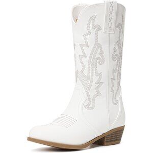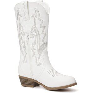 ⚡Girls White Kids Western Boots Embroidered Cowgirl Boots Riding Shoes Mid Calf