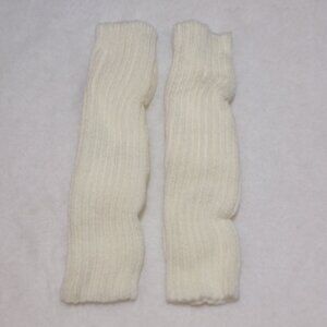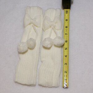 Girls White Ribbed Knit Leg Warmers Pompom Bow 10" NEW