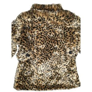 Girls Winter Coat Plush Faux Fur Leopard Print Button Down Cozy Coat 24M