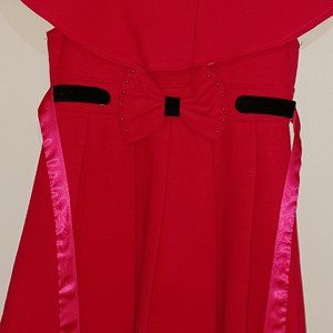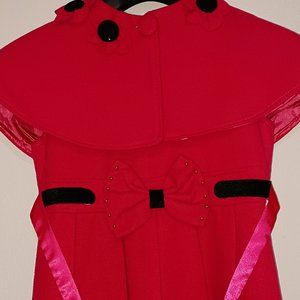 So beautiful and high quality dress for girls. Thick and warm material, with soft lining underneath. The size is 15, but I can tell the dress can fit girls from 10 -15 years old, depending on the body. The color is more pinkish, the belt shows it better. Condition is great, it has only been worn twice.