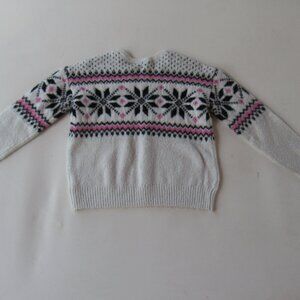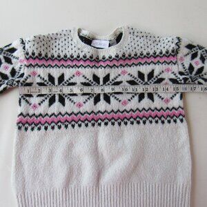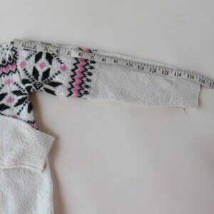 Girls Winter Fairisle White/Pink Frosty Floral Patterned Knit Sweater Size M 7/8