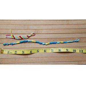 2 Pieces Girls Women's Handmade Embroidery Floss 10" Bracelet and Charm Keychain Set.