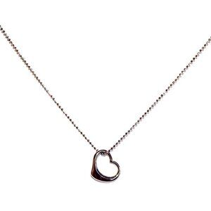 This beautiful open heart suspends on a dotted chain measuring 17" long. Silver tone.