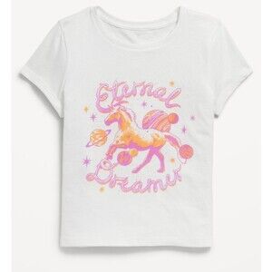 This listing is for a Girl's XL Unicorn T-shirt Old Navy Short Sleeve Crew neck Eternal Dreamer. 50% Cotton and 50% Polyester.
