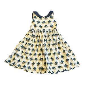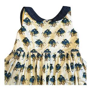 Girls Yellow Dress with Blueberry Print Pan Collar Retro Vintage Design Dress