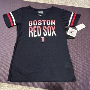 NWT, Girls Youth Boston Red Sox New Era Navy Slub Jersey V-Neck T-Shirt, size 10/12. Letters are sparkly/ glittery.