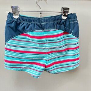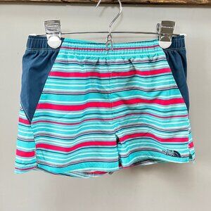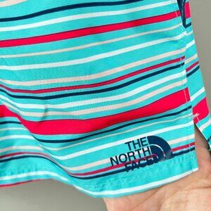 Girls Youth North Face Class V Teal Red Blue Tan Striped Shorts- Size Medium (10-12). In great pre-owned condition.