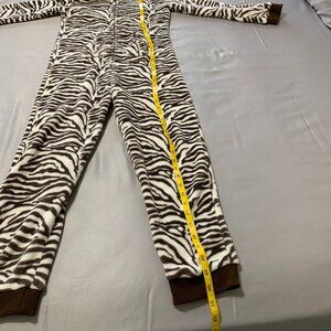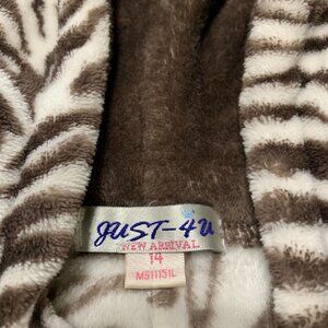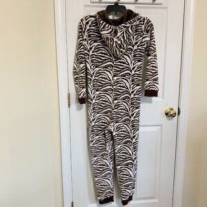 Girls Zebra Stipped Hooded Onesie. Fleece. Size 14. Brown.