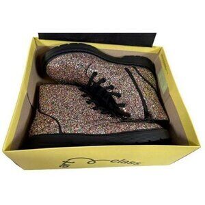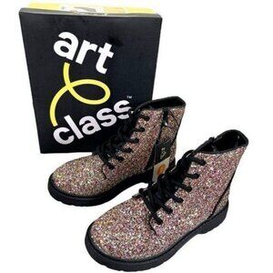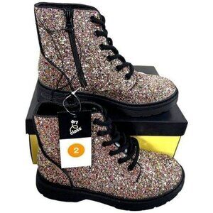Girls' Zoe Combat Boots Multi-Color Glittered Style Zipper Lace-Up Youth Size 2