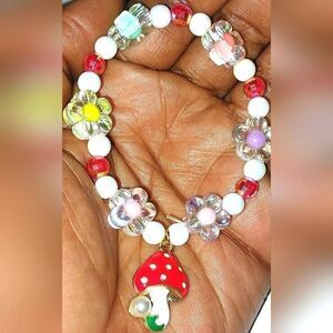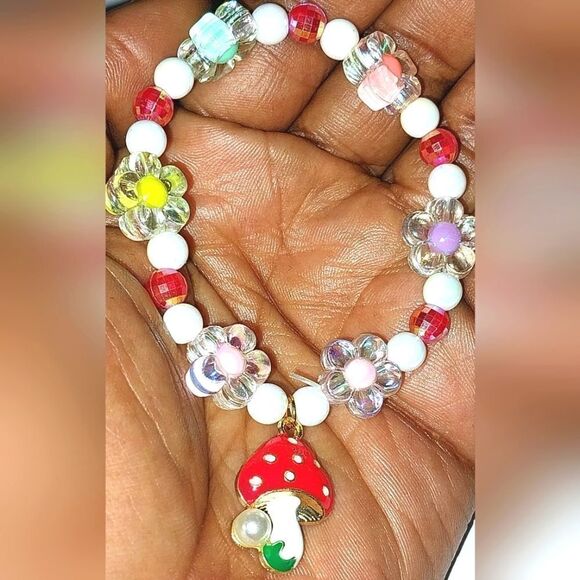 Makersland Girls Acrylic Star Flower + Alloy Mushroom Pendant Bracelet