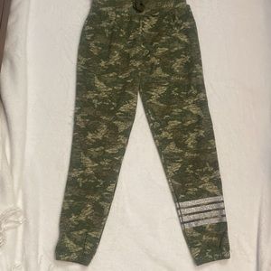 Perfect shape. Girls size 10 army print two piece set, Very very soft and cozy material comfy nice glitter print