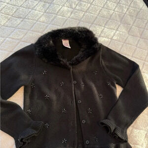 Girls black 2 piece embellished sweater set w/faux fur collar - Gymboree size 7