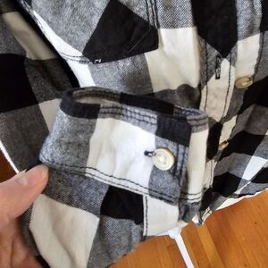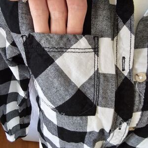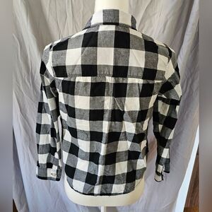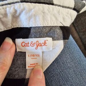 Cat & Jack girls size large 10-12. black and white plaid button down flannel shirt front pockets. excellent condition. worn once.