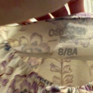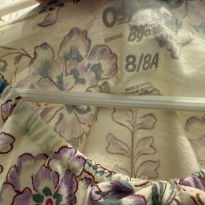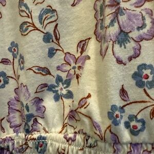 Lilac, rust and soft blue floral pattern on cream/ off white