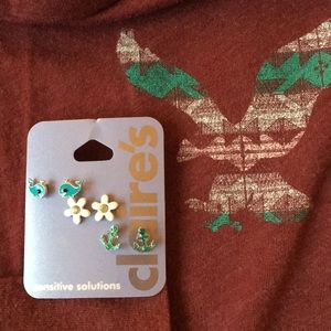 Aero round hem LS tee, 3 pack Claire’s earrings