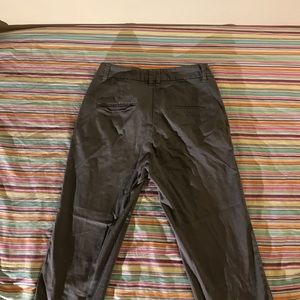 Dark gray capris. They are fairly new. Button above zipper was re sewed when it fell off. Side pockets. Back pockets are not open.