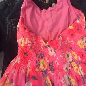 Beautiful colorful dress can be used as halter or spaghetti strap. Stylish jean jacket from Lei.