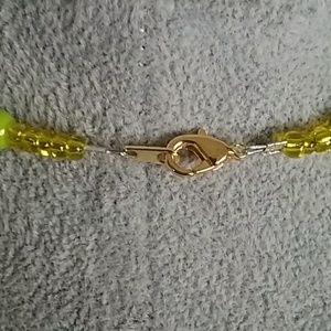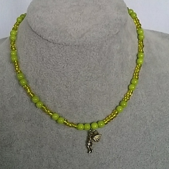 NEW WITH TAGS This custom handmade girls yellow and green beaded necklace with fairy charm is 15 inches long with a lobster clasp closure. Made of acrylic and glass beads.