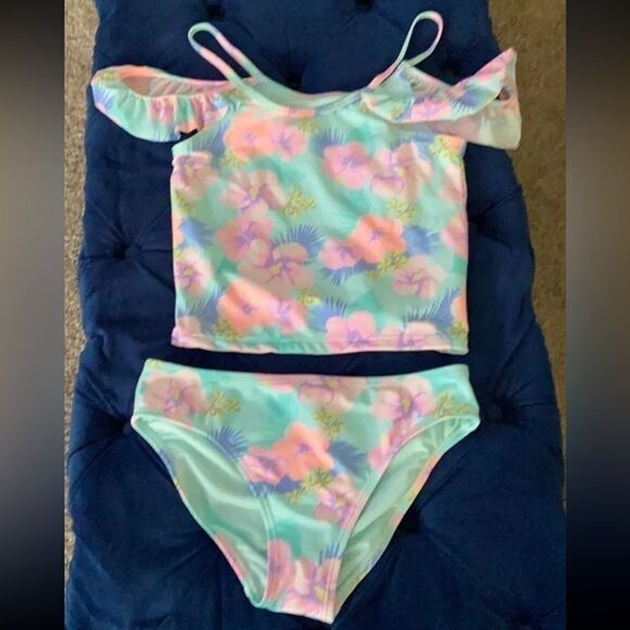 Super cute print 2 piece. Ruffles on sleeves. New without tags, never worn. Size 10/12 (L)
