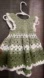 Baby girl handcrafted knitted Hunter green white trimming, with hand beaded pearls, comes with head band made with 💯 %acrylic yarn 🧶 hand wash like warm water with fabric softener line dry , 🤭she’s a beauty come get her …