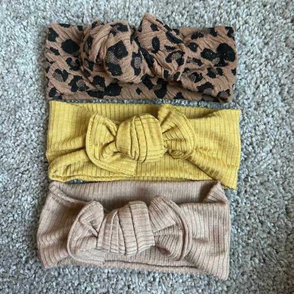 Set of three headbands. Mustard, tan and cheetah pattern. Ribbed material. Like new condition.