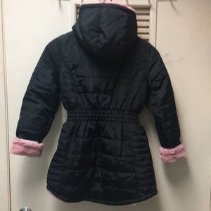Reversible! 2 in 1, gorgeous girls jacket with a hood and side pockets, wind and water resistant,check out the pics! Ask questions. Price firm!