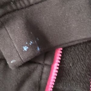 Girls sz 6 hooded zip up jacket. Sweatshirt material. Small paint stain on the sleeve (pictured) other than that good condition