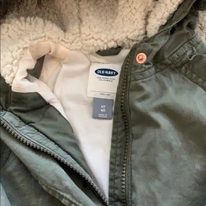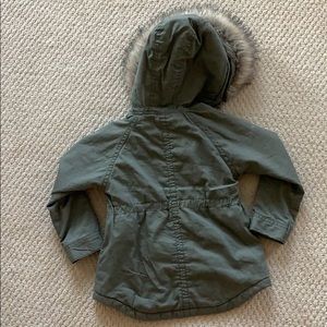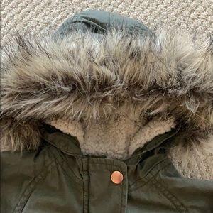 Girls 4t olive drab jacket with faux fur.
