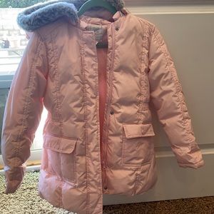 Girls Gymboree jacket size large (10-12 years old). Light pink, with removable hood. Used and in excellent condition.