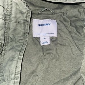 Girls green size 4T old navy jacket with hood, zips up and buttons for extra closure