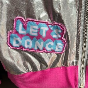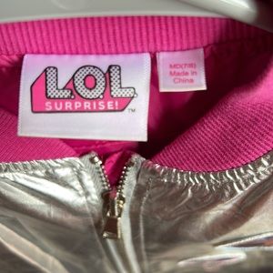 Rarely worn girls jacket. LOL brand silver foil jacket with patches. Pink lining and pink trim along collar and wrists.