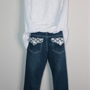 Girls Denim pants with white lace accents. Dress it up pr dress it down! either way these are adorable and I'm so bummed they dont fit me anymore.