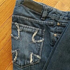 Blue jeans, like new. Chalcedony is the designer, size 14. Relaxed denim, straight leg. Zipper, front pockets.
