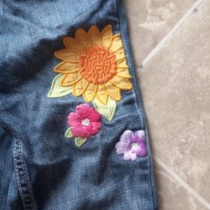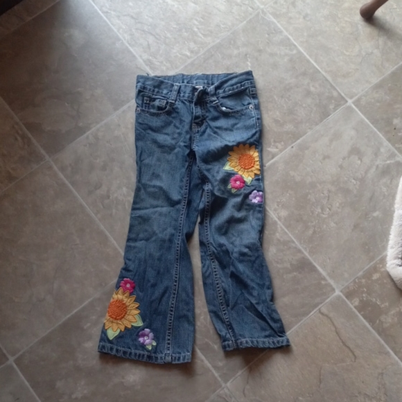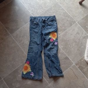 Girls size 5 jeans with floral imprints. Like new no stains or rips