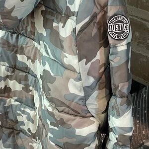 Girls justice sz 18/20 packable puffer green camo jacket coat