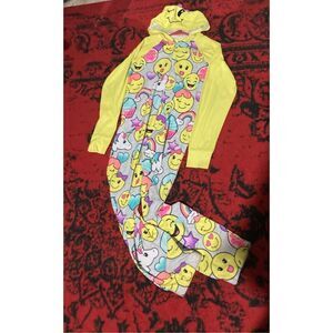 Girls kids Pajamas Pj’s Smiley Face one piece SZ 14 Unicorn EMOJI