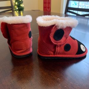 Shearling lined rubber soled boots. These boots are marked 12 to 18 months but fit more like a 5/6 in toddler